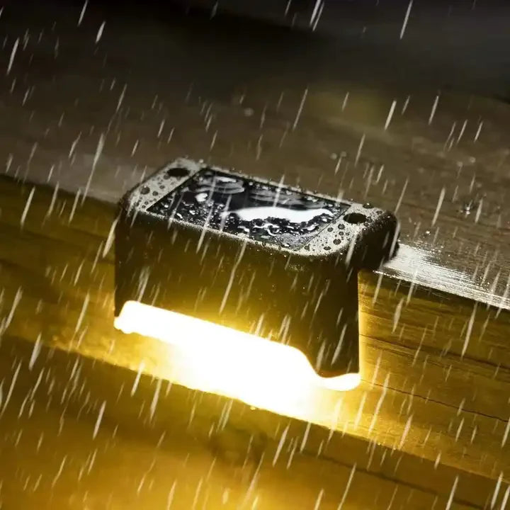 No más escalones oscuros. Iluminá pasillos, decks y jardines con estas mini luces solares que se cargan de día y realzan tus escalones de noche. Cero cables, cero drama y un efecto premium inmediato.