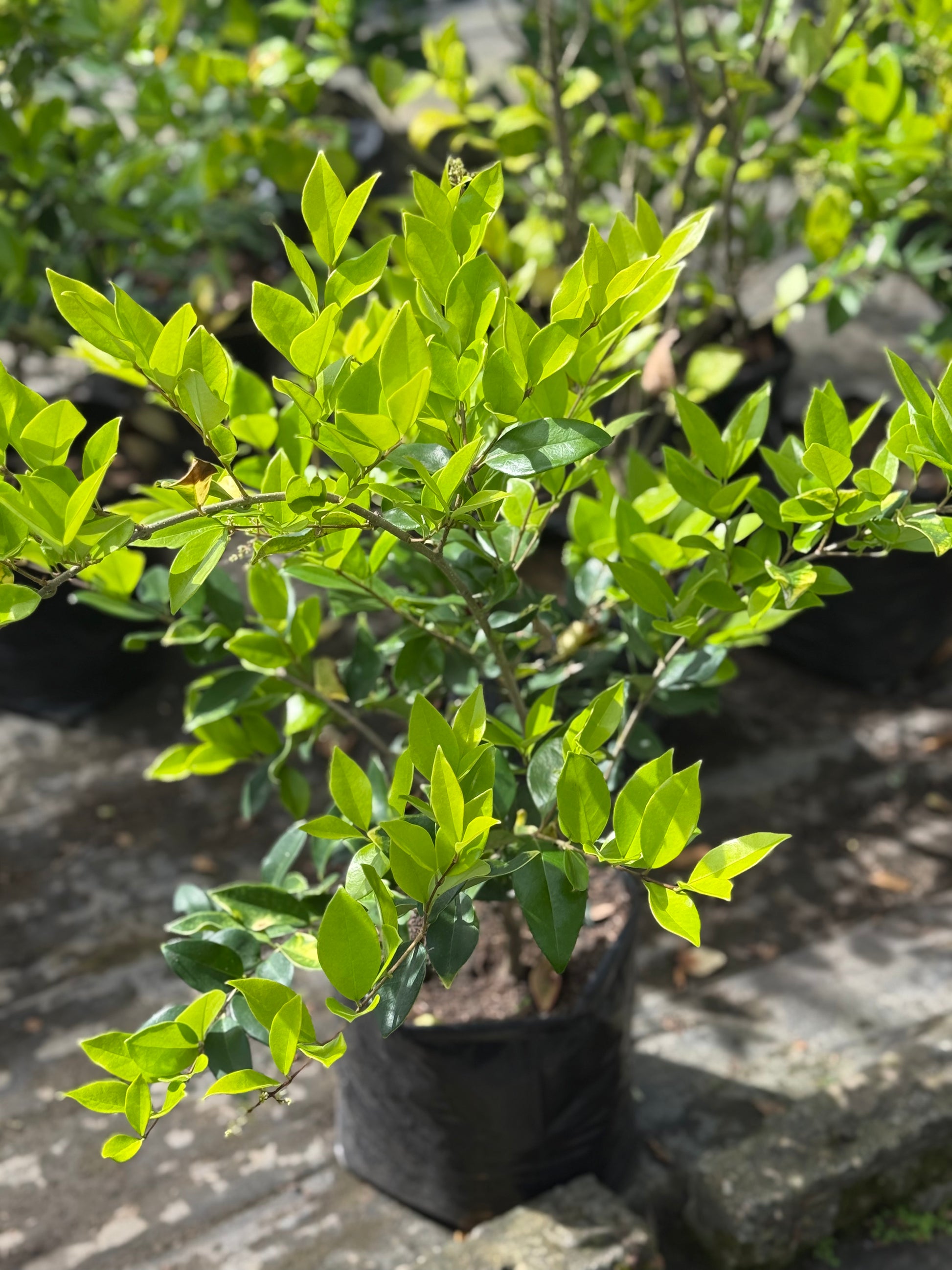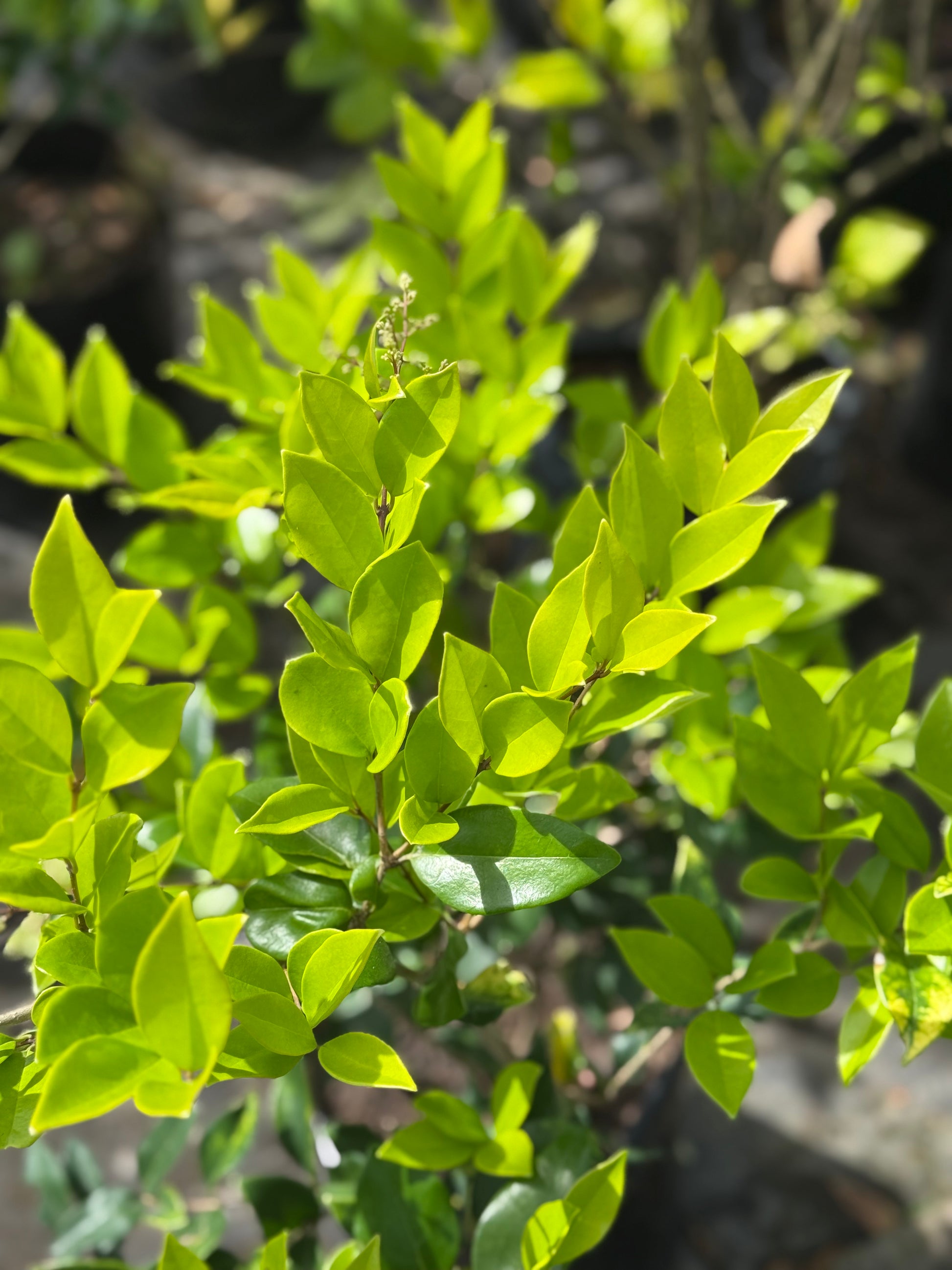 La Óleo Texana (Ligustrum japonicum ‘Texanum’) es un arbusto perenne muy usado en jardines por su follaje brillante, denso y resistente. Presenta hojas verdes oscuras, coriáceas y ovaladas, que se mantienen todo el año. Durante la primavera produce racimos de flores blancas pequeñas y perfumadas, seguidas a veces por frutos oscuros. De crecimiento moderado a rápido, puede alcanzar entre 1,5 y 3 metros de altura, por lo que se usa mucho como seto formal o cerco verde.